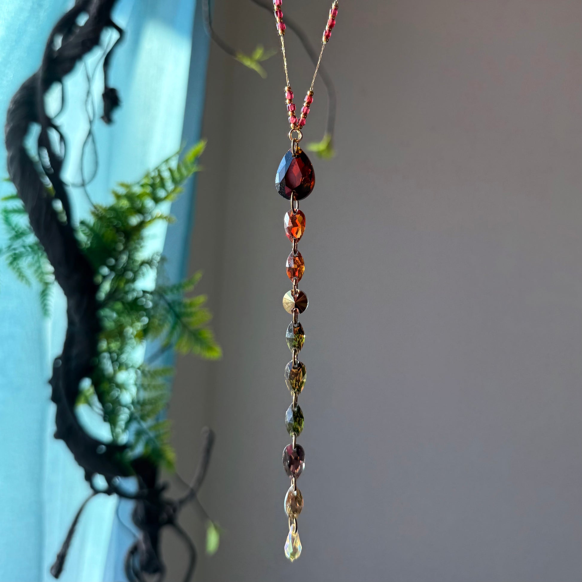 stainless steel chain gold plated with real genuine garnet beads - one of a kind