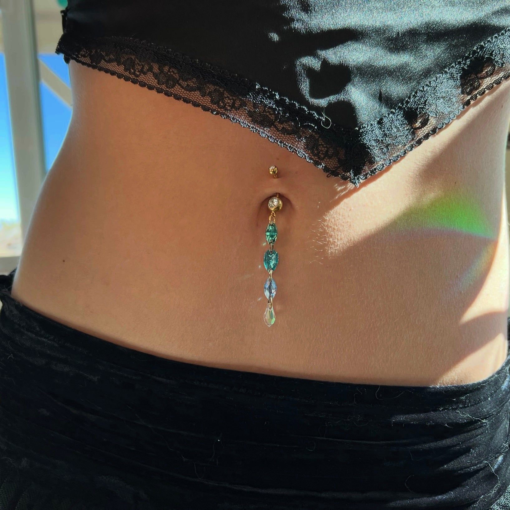 Frosted Petal Belly Ring in Gold Stainless Steel