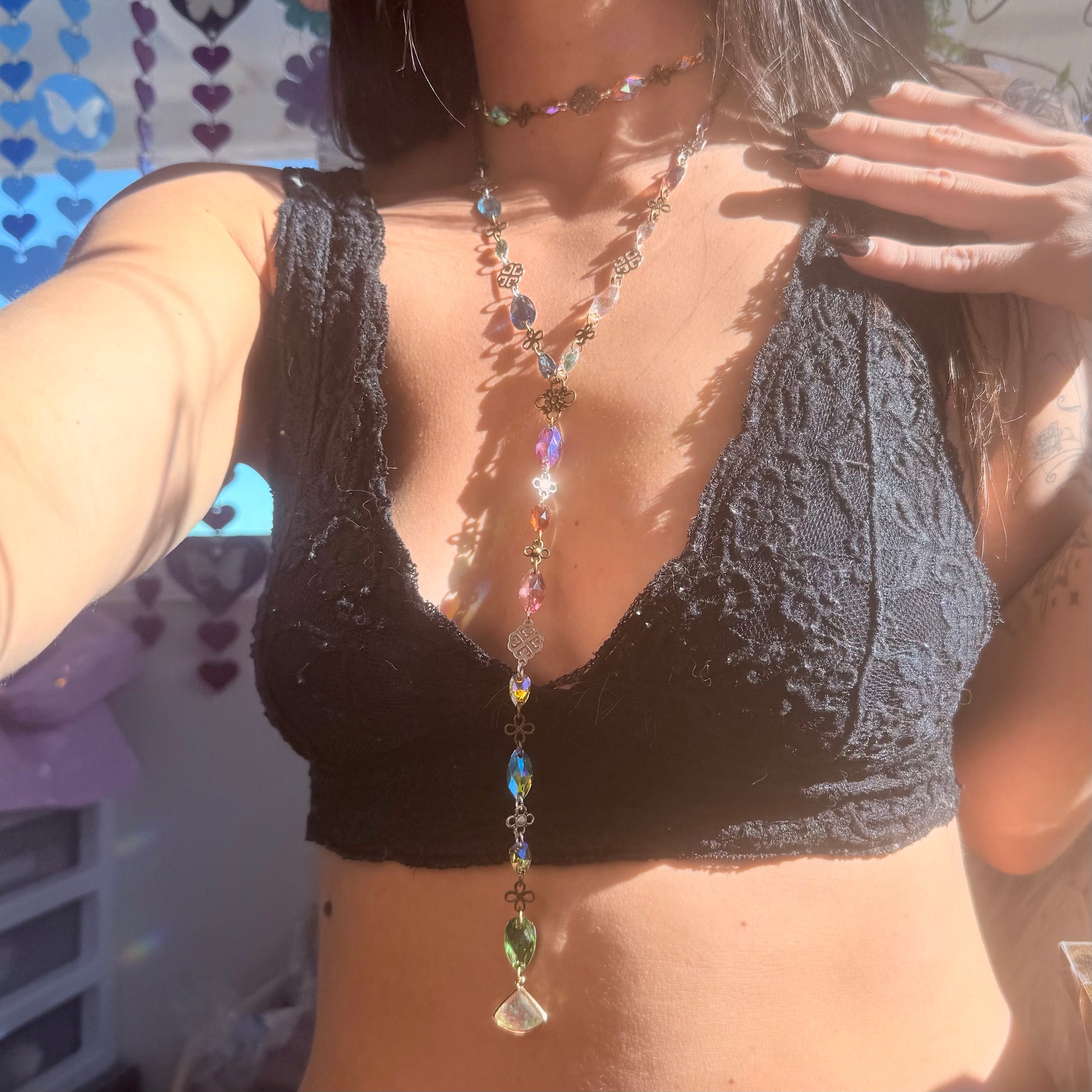 The Healer Stack was made for sunlight on skin and music in your bones. This fully detachable layered set features a glowing choker paired with a dramatically long, body-skimming chain that transforms any outfit from simple to spellbinding in seconds.