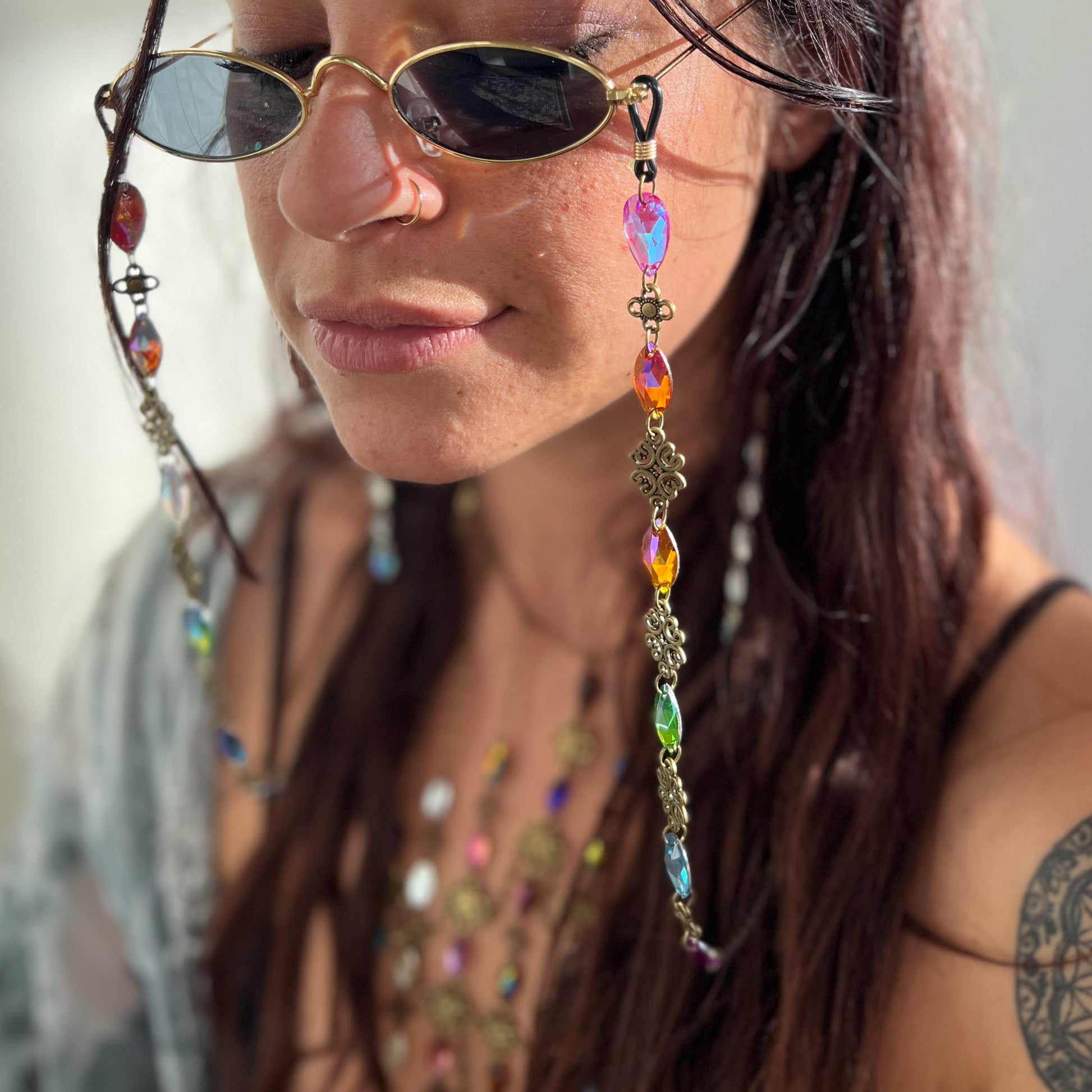 Ready to Ship Brass Link Chunky Crystal Glasses Chain