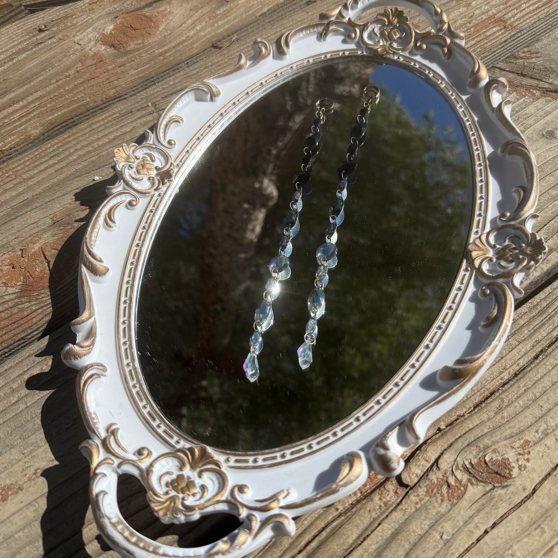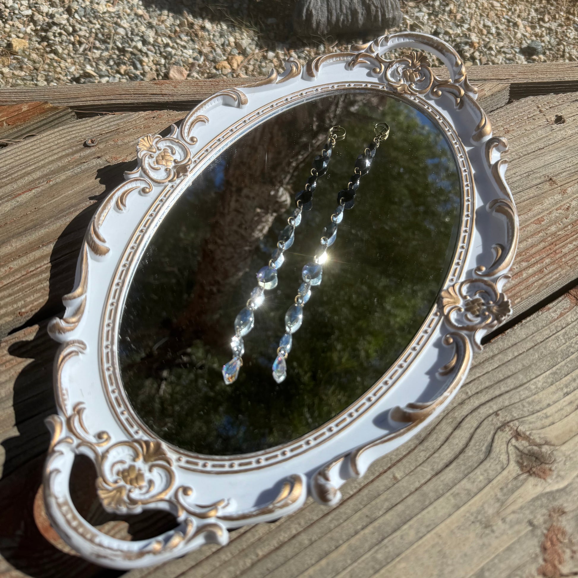 Light as a feather and radiant as the sun — these long, hand-crafted earrings shimmer with crystal sun catchers that cast tiny rainbows wherever you go. Each pair features French brass clasps that are secure, gauge-friendly, and effortlessly comfortable. They feel like wearing light itself — floating, glimmering, alive with color.