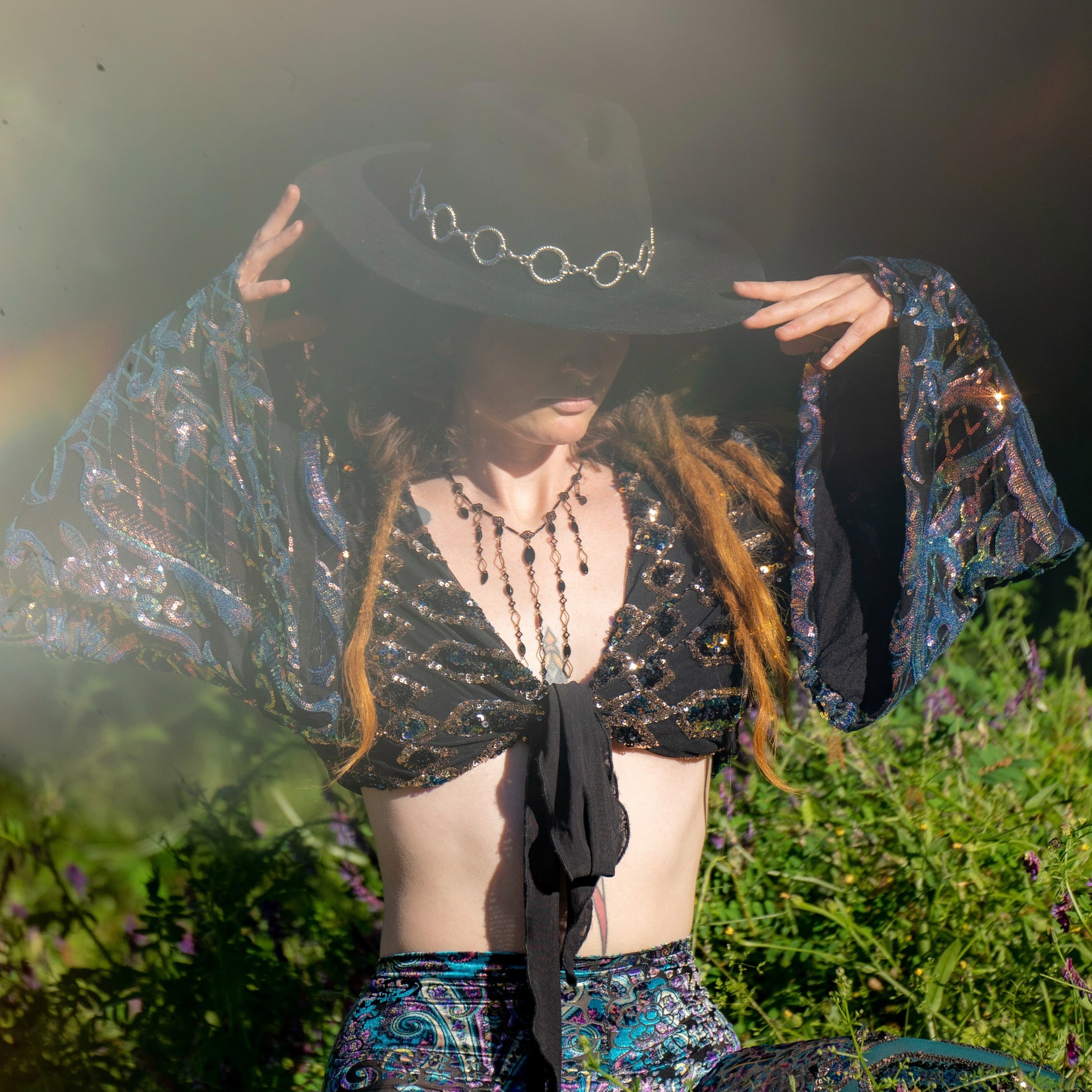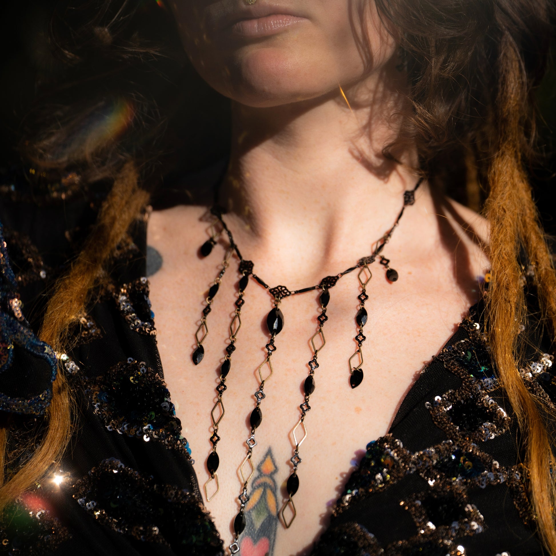 This one of a kind necklace is made for all those witchy souls. It's textured with brass and black metals, and links. It brings a dark aura to your fit, but can truly match anything. Perfect for everyday wear, or to add an element of high fashion to your fit!