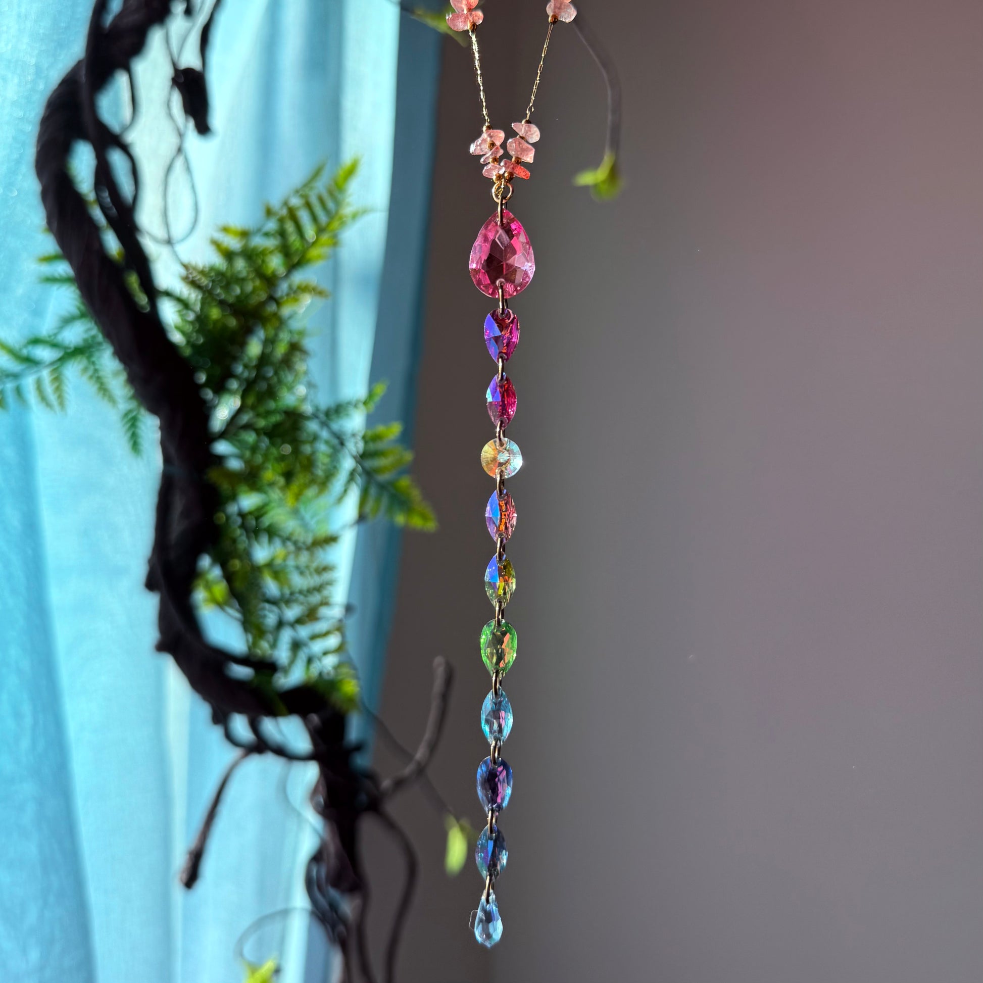 stainless steel chain gold coated with strawberry quartz beads - one of a kind